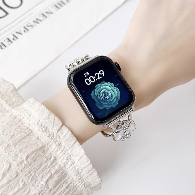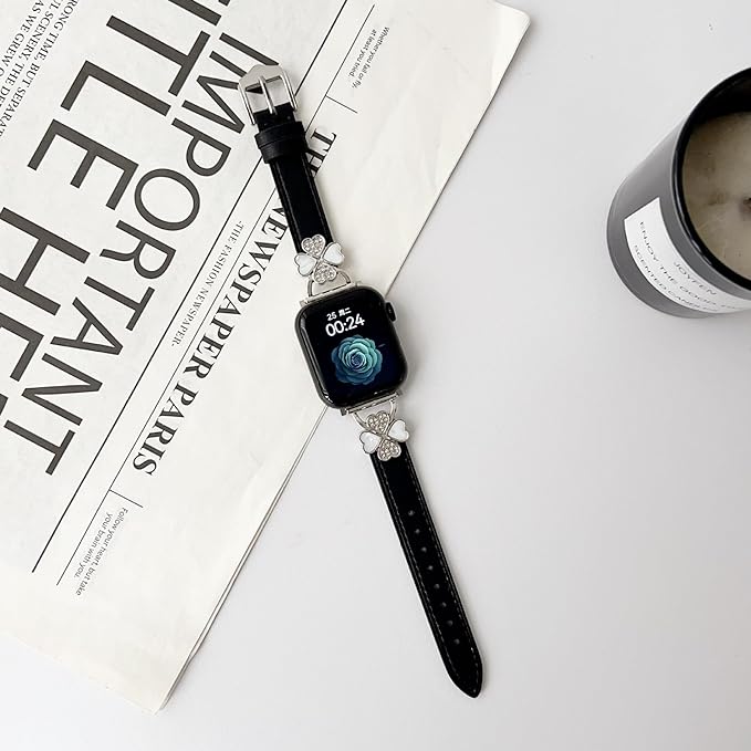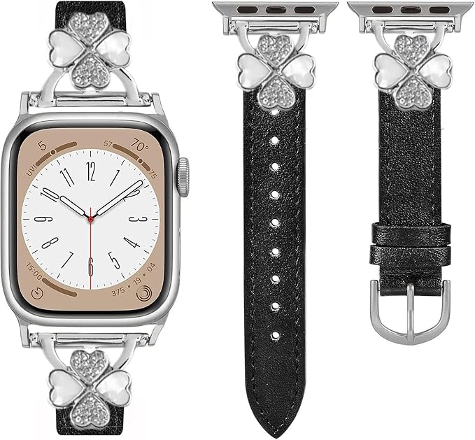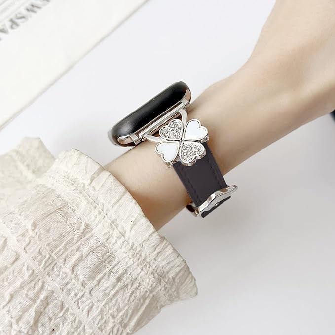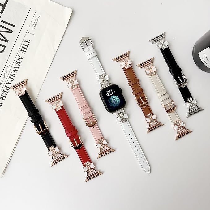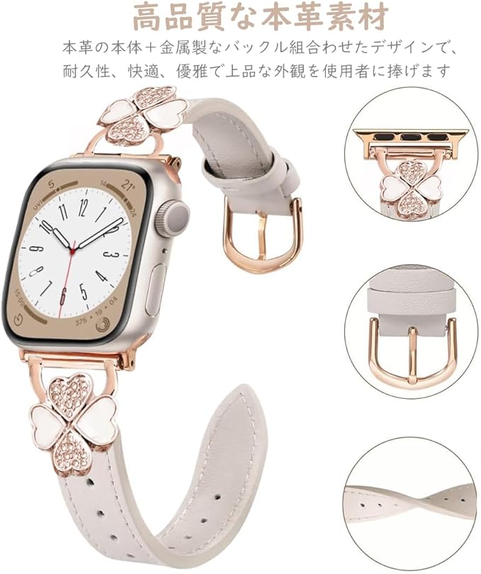 For Apple Watch バンド レザー本革 コンパチブル Apple Watch Series Ultra/Ultra2/10/9/8/7/6/5/4/3/2/1/SE2/SE レディース スリム クローバー おしゃれ 可愛い アップルウォッチ バンド iwatch交換ベルト iWatch 38mm 40mm 41mm 42mm 44mm 45mm 46mm 49mmに対応1