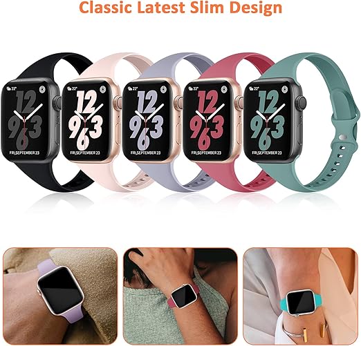 対応機種: 5本 セット 薄い クラシックスポーツシリコンアップルウォッチ バンド は iWatch Ultra 49mm 38mm / 42mm 40mm / 44mm 41mm / 45mm Series 8, Series 7, Series SE, Series 6, Series 5, Series 4, Series 3, Series 2, Series 1。肌にやさしく、柔らかく、毎日の着用に耐える高品質のシリコンApple Watch 交換用 スリム バンド。