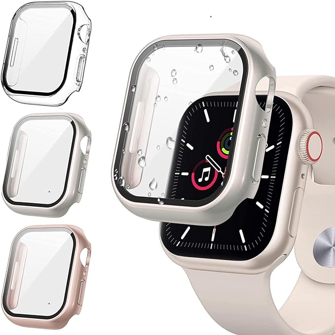 【3個入り】FALSAD Apple Watch Series9/8/7 カバー 対応 アップルウォッチ41mm/45mm、PC素材バンパーと強化ガラスフィルム一体型 Apple Watch 保護ケース 防水 全面保護 超薄型 軽量 耐衝撃 高透過率 指紋防止 装着簡単 (45mm クリア/スターライト/ローズ)1