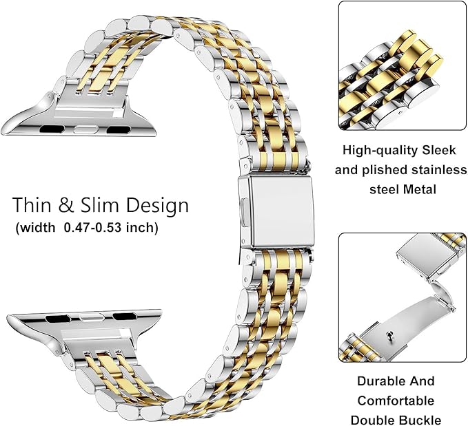 MioHHR の細いバンドは Apple の腕時計のバンド 38 の mm 40 の mm 41 の mm 42 の mm 44 の mm 45 の mm、女性の iWatch のバンド シリーズ 8 7 6 5 4 3 2 1 のための薄いステンレス鋼の金属の鎖の革紐と互換性があります SE1