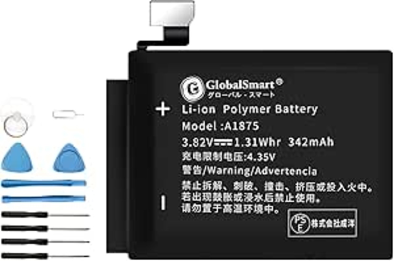 GlobalSmart Apple Watch Series 3 (GPS) 42 mm 電池 対応 A1875,A1859,A1892用 3.82V 342mAh 互換バッテリー PSE認証済 バッテリー修理用 取付工具付き1