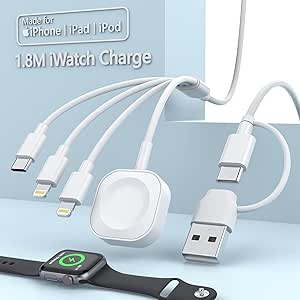 【1つですべてのマルチ充電器】4 in 2 iWatch & iPhone充電器は2-in-1 USB A/Type Cポートを搭載し、デザインは磁気ウォッチ充電器、Type-Cと2*iPhoneコネクタが含まれています。すべてのWatchシリーズ、iPhone、iPod、Type C Android携帯電話に対応し、1本のケーブルで4つの異なるニーズを満たします。1本のケーブルで4台のデバイスを同時に充電できます。複数の充電ケーブルを持ち運ぶ手間を省き、このApple iWatch充電器はあな