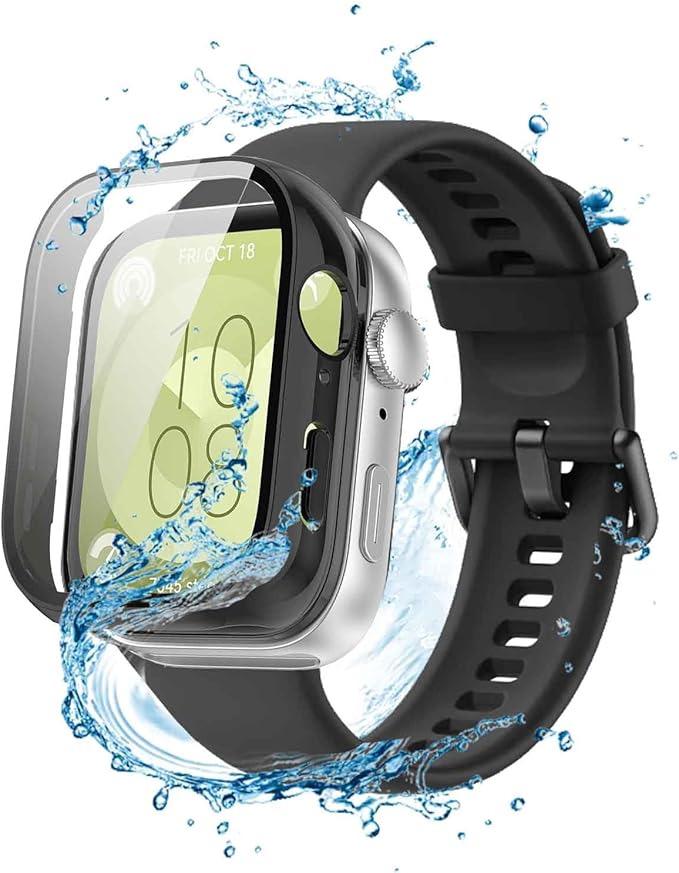 【優れた防水防塵機能】日常生活での汗や洗顔のときの水滴、雨などに耐えられるものですが、水仕事、水上スポーツ、素潜り、潜水には使用しないで下さい。万が一水が侵入した場合には一旦保護ケースを取り外し、柔らかい布で水を拭き取り完全に乾燥させてからのご使用を推奨しております。また、HUAWEI Watch Fit3本体の劣化や耐水性が損なわれる場合 がありますので、真水以外に触れた場合は、きれい