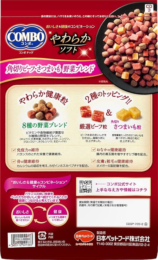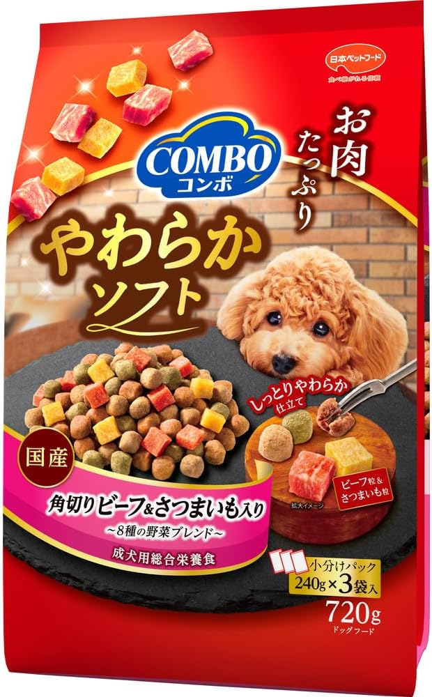 コンボドッグやわらかソフト【半生タイプ】【たっぷりお肉粒】【国産】【小分け包装】角切りビーフ・さつまいも 野菜ブレンド720g