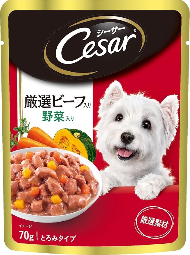 シーザー パウチ 成犬用 厳選ビーフ入り 野菜入り 70g×16個 (まとめ買い) [ドッグフード・ウェット]