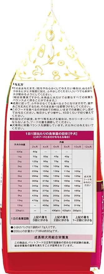 たんぱく質、カルシウム強化のしっかり栄養設計。DHA配合。小粒。