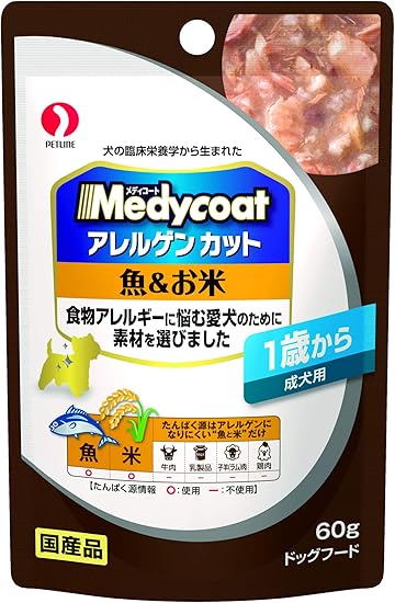 メディコート ドッグフード アレルゲンカット パウチ 1歳から 成犬用 まぐろ 60グラム (x 12) (まとめ買い)