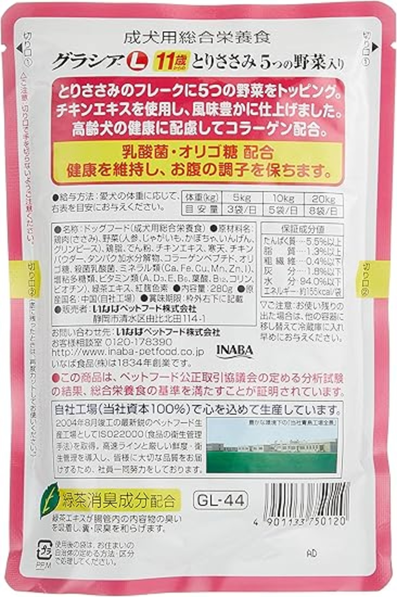 いなば グラシアL 11歳からのとりささみ 5つの野菜入り 280g 6個セット