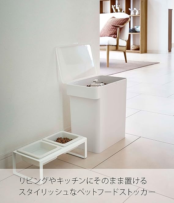 山崎実業(Yamazaki) 密閉 ペットフードストッカー 6.5kg 計量カップ付 ホワイト 約W30.7×D19.7×H31.2㎝(蓋開口時:約H49.5㎝) タワー フードストッカー 保存容器 5615
