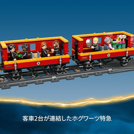 ミニフィギュア8体 – ハリー・ポッター、ロン・ウィーズリー、ハーマイオニー・グレンジャー、ドラコ・マルフォイ、リー・ジョーダン、ルビウス・ハグリッド、車内販売の魔女、車掌のほか、家族アルバムなどの各種アクセサリーが付属