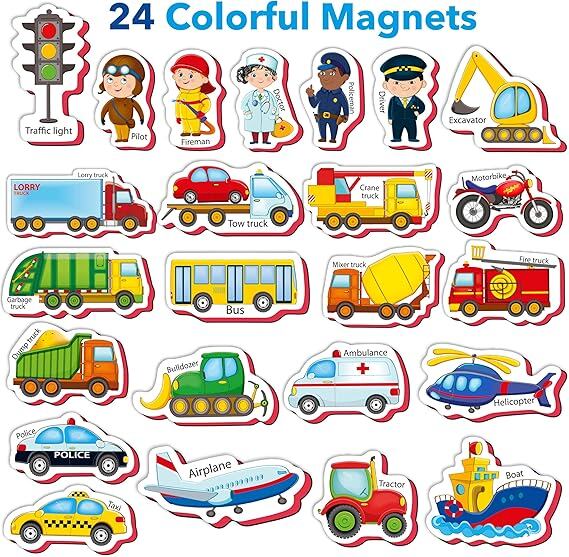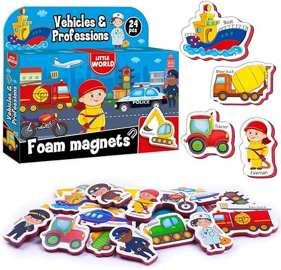 Little World 幼児用フォーム冷蔵庫マグネット 24個 1~3歳用 - 子供用冷蔵庫マグネット - 1歳児用ベビーマグネット - 1~2歳の幼児向けおもちゃ磁気車両 - 子供に安全なマグネット1