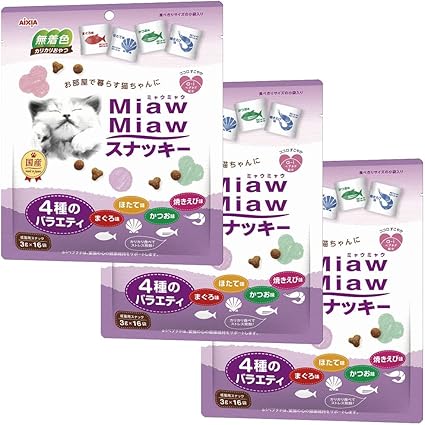 ミャウミャウ (MiawMiaw) スナッキー 4種のバラエティ まぐろ味・かつお味・焼きえび味・ほたて味 48g×3個セット