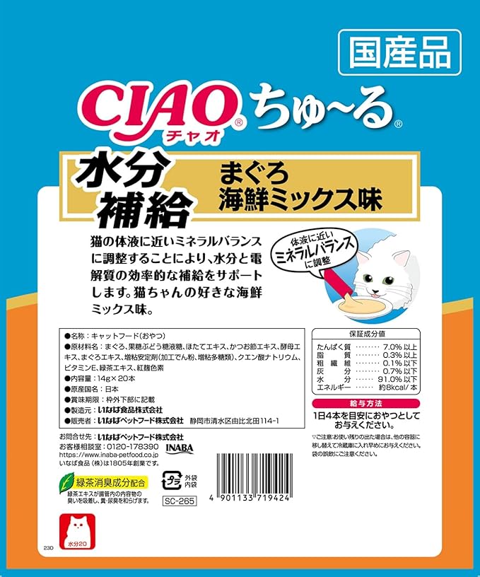 チャオ (CIAO) ちゅ~る 水分補給 まぐろ 海鮮ミックス味 20本