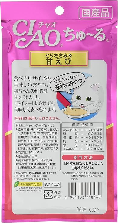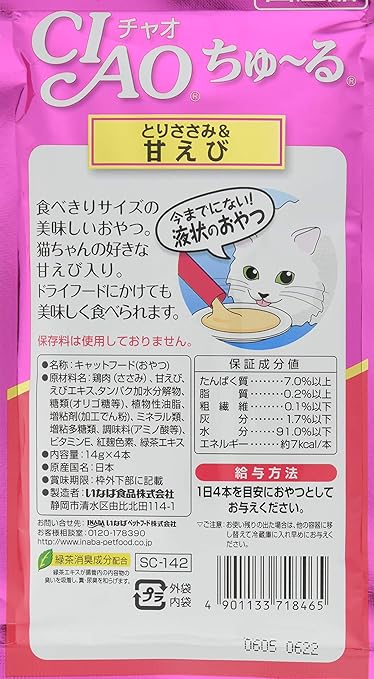 チャオ (CIAO) ちゅ~る とりささみ&甘エビ 4本 6個セット