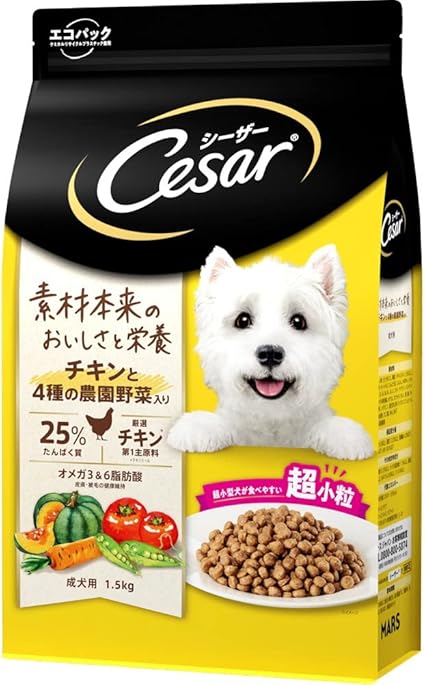 シーザードライ 成犬用 超小粒 ドッグフード チキンと4種の農園野菜入り 1.5キログラム (x 1)