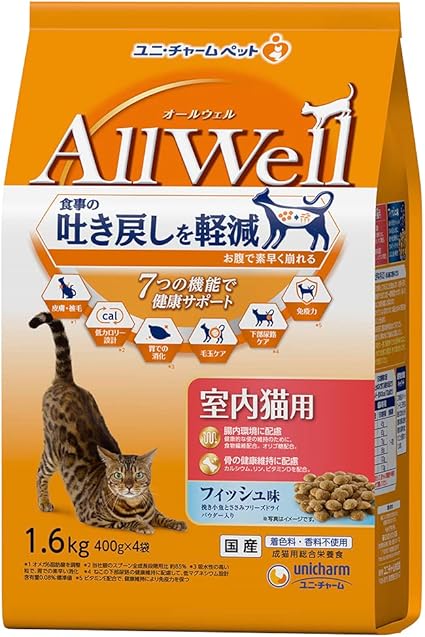 All Well(オールウェル) キャットフード ドライ [室内猫用] フィッシュ 吐き戻し軽減 1.6kg【国産】