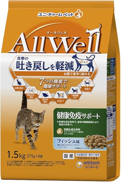 All Well(オールウェル) キャットフード ドライ [健康免疫サポート] フィッシュ 吐き戻し軽減 1.5kg【国産】