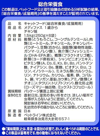 メディファス キャットフード 1歳から チキン味 【下部尿路/pHコントロール/麻布大学共同開発/国産/アルミ小分け】 6kg(500g×12)