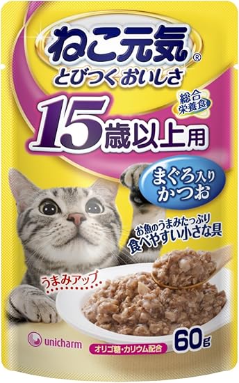 ねこ元気 総合栄養食 パウチ15歳以上用まぐろ入りかつお 60g×24個 キャットフード 60グラム (x 24)
