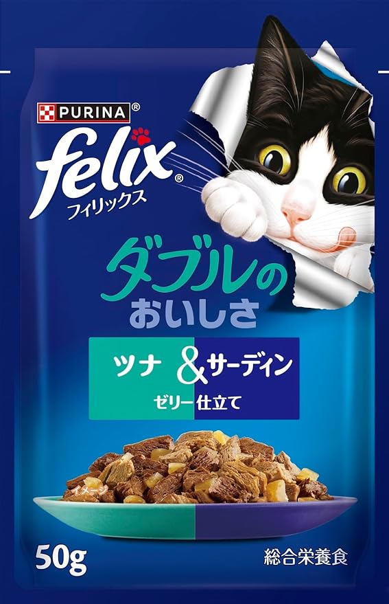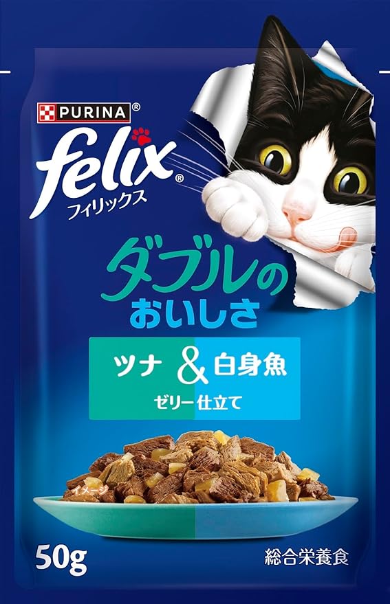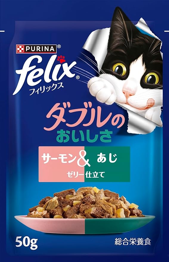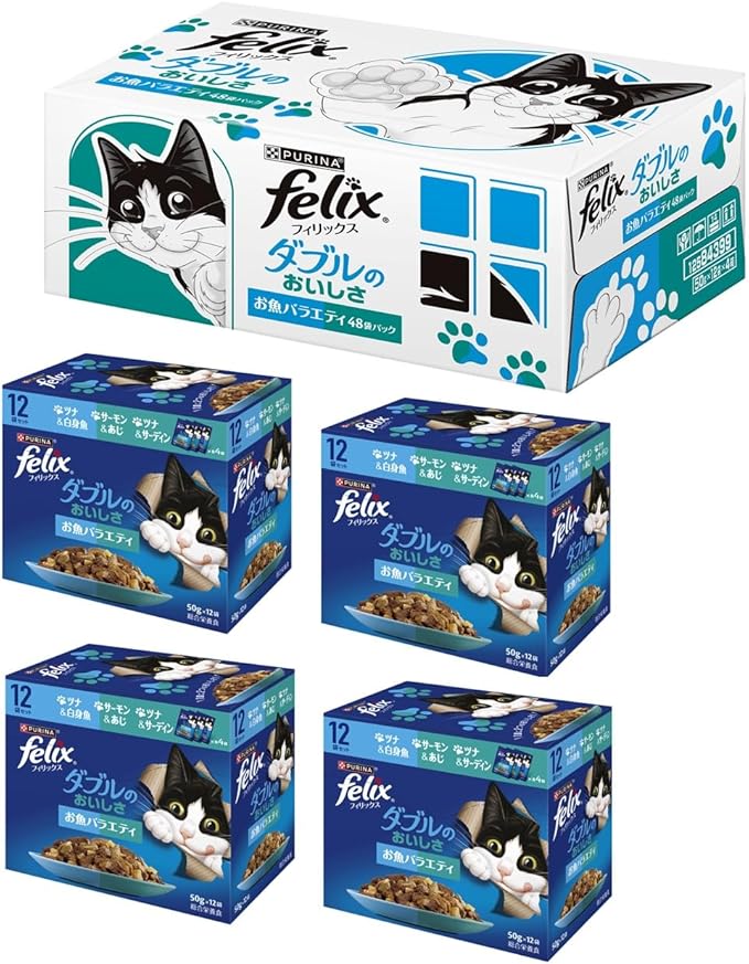 フィリックスパウチ ダブルのおいしさ お魚バラエティ(ツナ&白身魚、サーモン&あじ、ツナ&サーディン) 50gx48袋入り(12袋x4箱)【Amazon.co.jp限定】