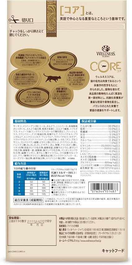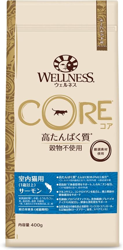 ウェルネスコア(穀物不使用 グレインフリー・高たんぱく質)室内猫用(1歳以上)サーモン400g