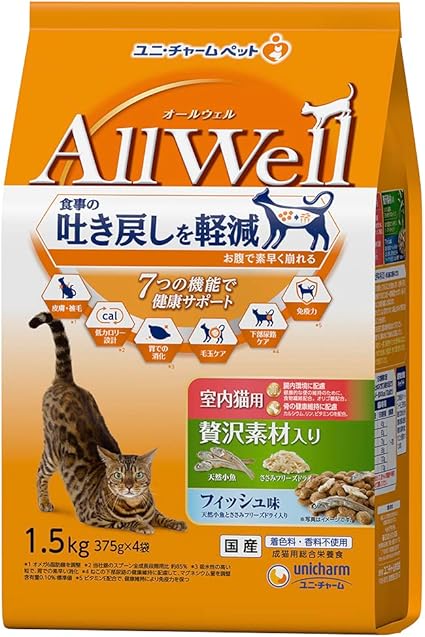 All Well(オールウェル) キャットフード ドライ [室内猫用] 贅沢素材入り フィッシュ 吐き戻し軽減 1.5kg【国産】