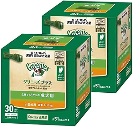 グリニーズ(Greenies) 正規品 グリニーズプラス 成犬用 小型犬用 7-11kg 30本入×2個セット(ボックスタイプ) オーラルケア ■ 犬用 おやつ