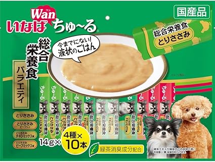 いなば 犬用 ちゅ~る 総合栄養食バラエティ 40本 とりささみ、とりささみビーフ入り、とりささみチキンミックス味、とりささみビーフミックス味