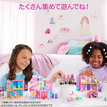 【内容】ミニバービーランドシリーズのハウスとマイクロドール、ペットのセット!ピンクのドリームハウスには、ハウスにはミニバービーランドシリーズのドールを固定できるハート型のくぼみやすべりだい、可動式のエレベーターやドア、ベッドなどギミックが沢山!付属のペットは開封するまで何が入っているかわからないサプライズ仕様。ミニバービーランドの他ののりものやハウス、マイクロドールを集めて自分のミニバービーランドを作ろう!