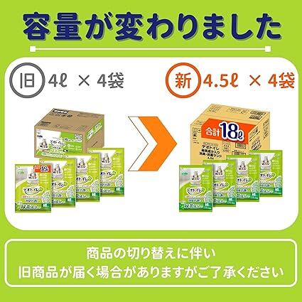 [燃やせる自然素材] デオトイレ 緑茶成分入り 消臭・抗菌サンド 18L (4.5L×4袋) [猫砂/紙砂] システムトイレ 猫用【Amazon.co.jp限定】