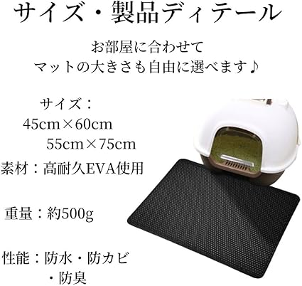 Mellbo 猫砂マット 猫 砂取りマット トイレマット 猫トイレ 飛び散り防止 高耐久EVA2層構造 (55cm×75cm)