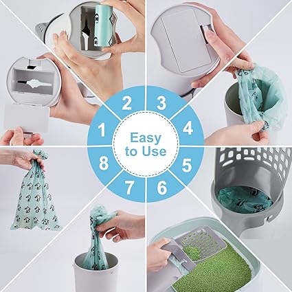1[ホルダー付き2 IN 1スコップ]猫砂スコップ+猫砂入れ+ゴミ袋の組み合わせユニークなデザインです。掃除と回収が一体となり、シンプルなスコップだけでなく、追加の袋も付いて、片手でペットのウンチを掃除でき、便利で毎日の掃除に適しています。