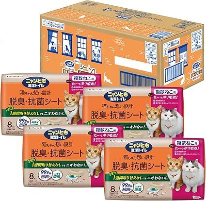 ニャンとも清潔トイレ 脱臭・抗菌シート 複数ねこ用 8枚入×4個 [猫用システムトイレシート](ケース販売) システムトイレ用 (ケース販売)