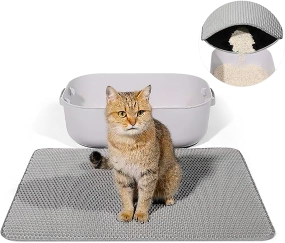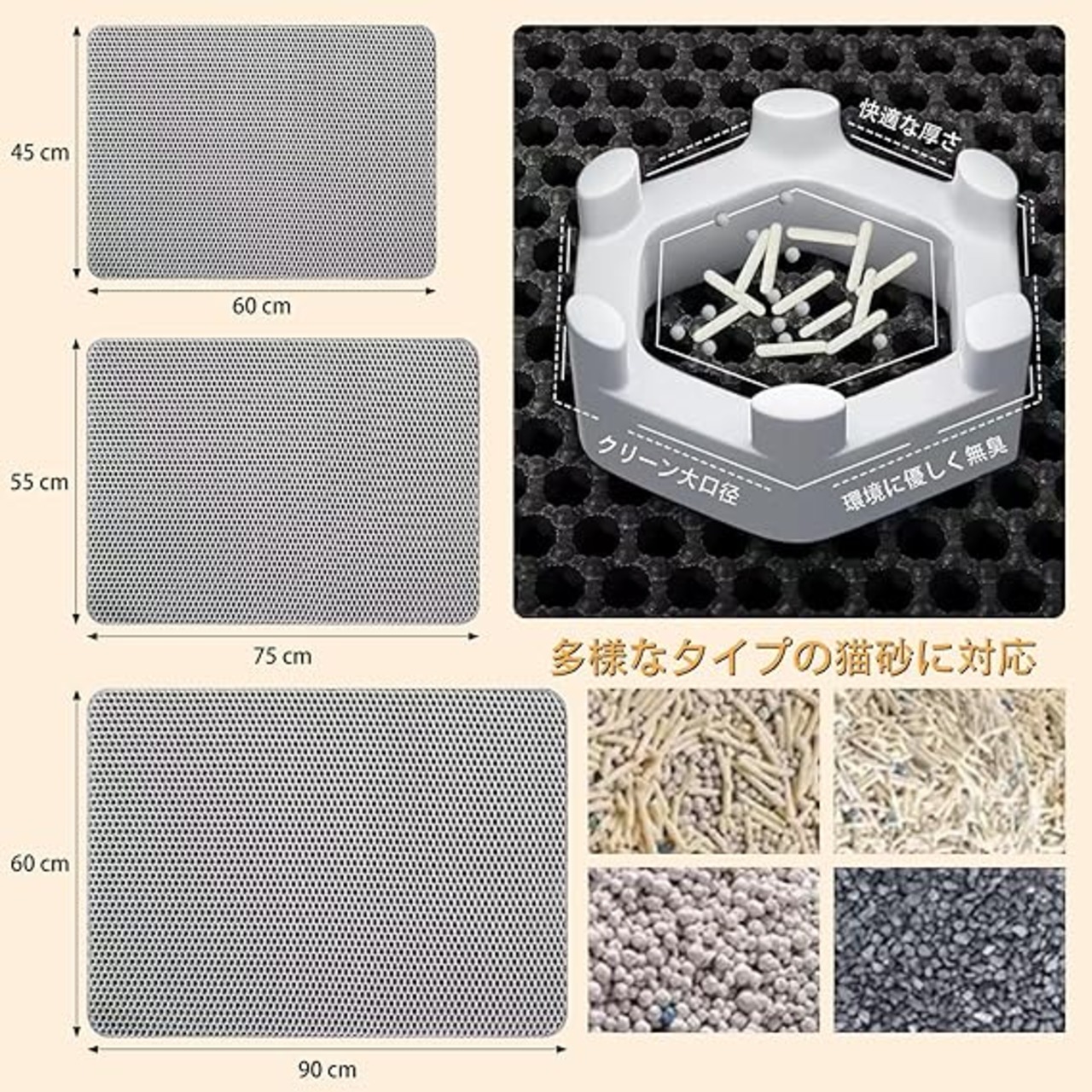GIIPET-猫砂マット 飛び散り防止 60*45cm/75*55cm/90*60cm 猫用トイレマット 猫砂取りマット 二重構造 猫マット 掃除簡単 EVA 滑り止め 猫用トイレシート 折り目がない 防水/防カビ/臭さ防止 マッサージ式 高耐久 (90*60CM)