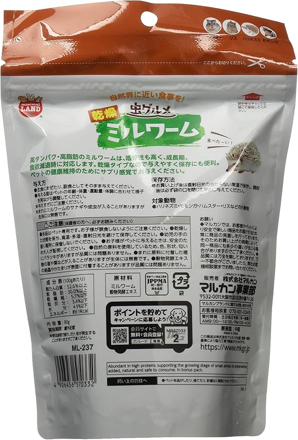 マルカン 虫グルメ 乾燥ミルワーム お徳用 80グラム (x 1)