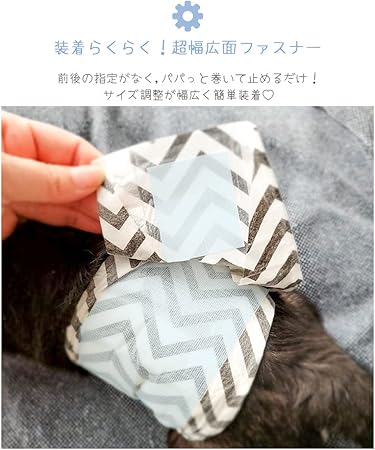 前後の指定がないので都度確認しなくて良く、マジックテープの部分が広いので巻きつけた時のサイズ調整がしやすい設計になっています。