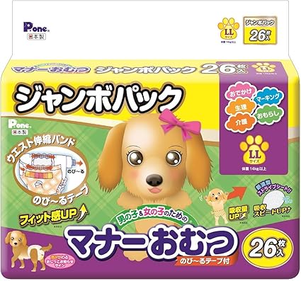 Pone P.one 男の子&女の子のためのマナーおむつ のび~るテープ付き ペット用 LLサイズ 26枚入