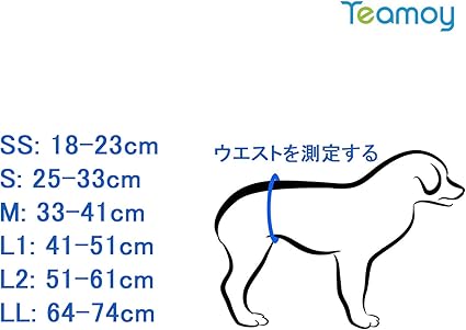 6つのサイズを用意しております。購入前に愛犬のウェストを測定して、サイズ表を参照してください。
