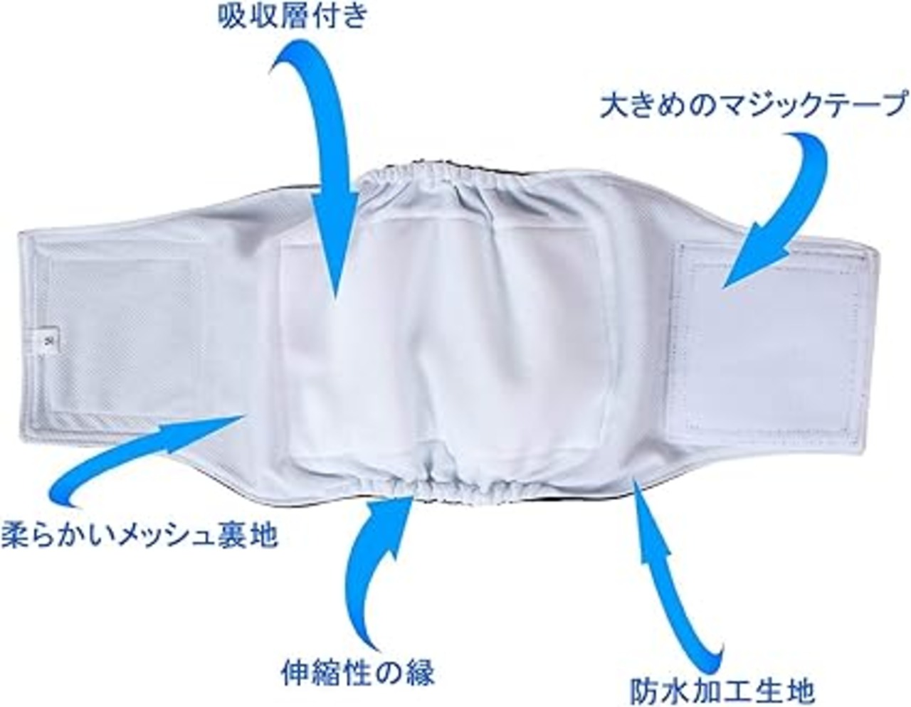 固定用のマジックテープは大きくて、愛犬に適切なサイズに調整できます。伸縮性の縁で、わんちゃんの動きにもピッタリフィットします。