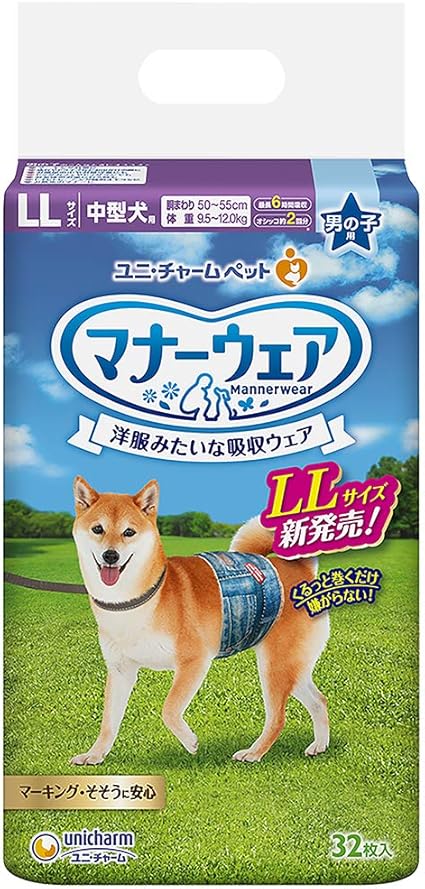 マナーウェア 犬用 おむつ 男の子用 LLサイズ 中型犬用 256枚 (32枚×8袋) おしっこ ペット用品 ユニチャーム