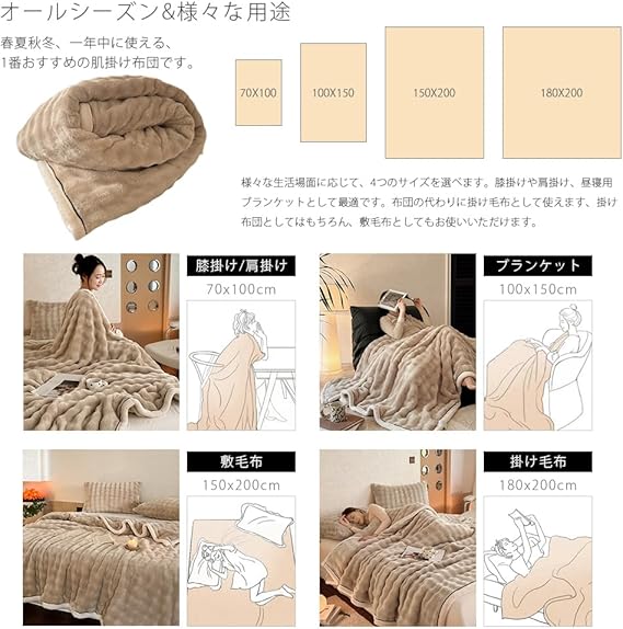 【超やわらかい毛布】うさぎの毛皮のように柔らかくふわふわブランケット、ふわっと軽くやわらかい肌触り、柔らい感触を体に感じます。触り心地も最高なふわふわ生地、圧迫感もない、膝や体にかけてふわふわで気持ちいいです。吸湿発熱わたが、寝ている間の汗を吸ってくれるためムレにくく、保温性にも優れている、快適に安眠できます。