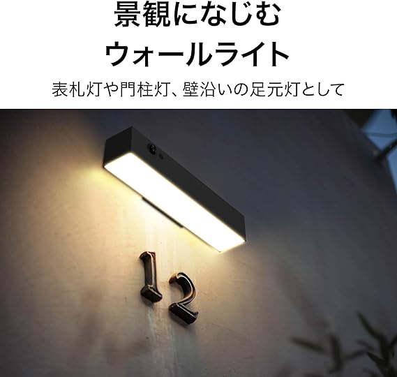 必要な時にしっかりと照らす人感センサーライト。門柱灯や壁沿いの足元灯として外観になじむウォールライト。エクステリア照明として明るさを実現。高輝度LED搭載。リチウムイオン充電池内蔵で長く使える。人感・明るさ感知センサー搭載。人感センサーで動くものに反応して点灯(省エネ点灯)。明るさ感知で暗くなったら自動で点灯。ソーラー充電式で電源不要・電気代0円。電源を取りにくい場所に設置できる。電気代を気にせずに使用できる。用途に合わせて照らし方を選択できる。4つのモード切り替え機能付。ExLightsシリー