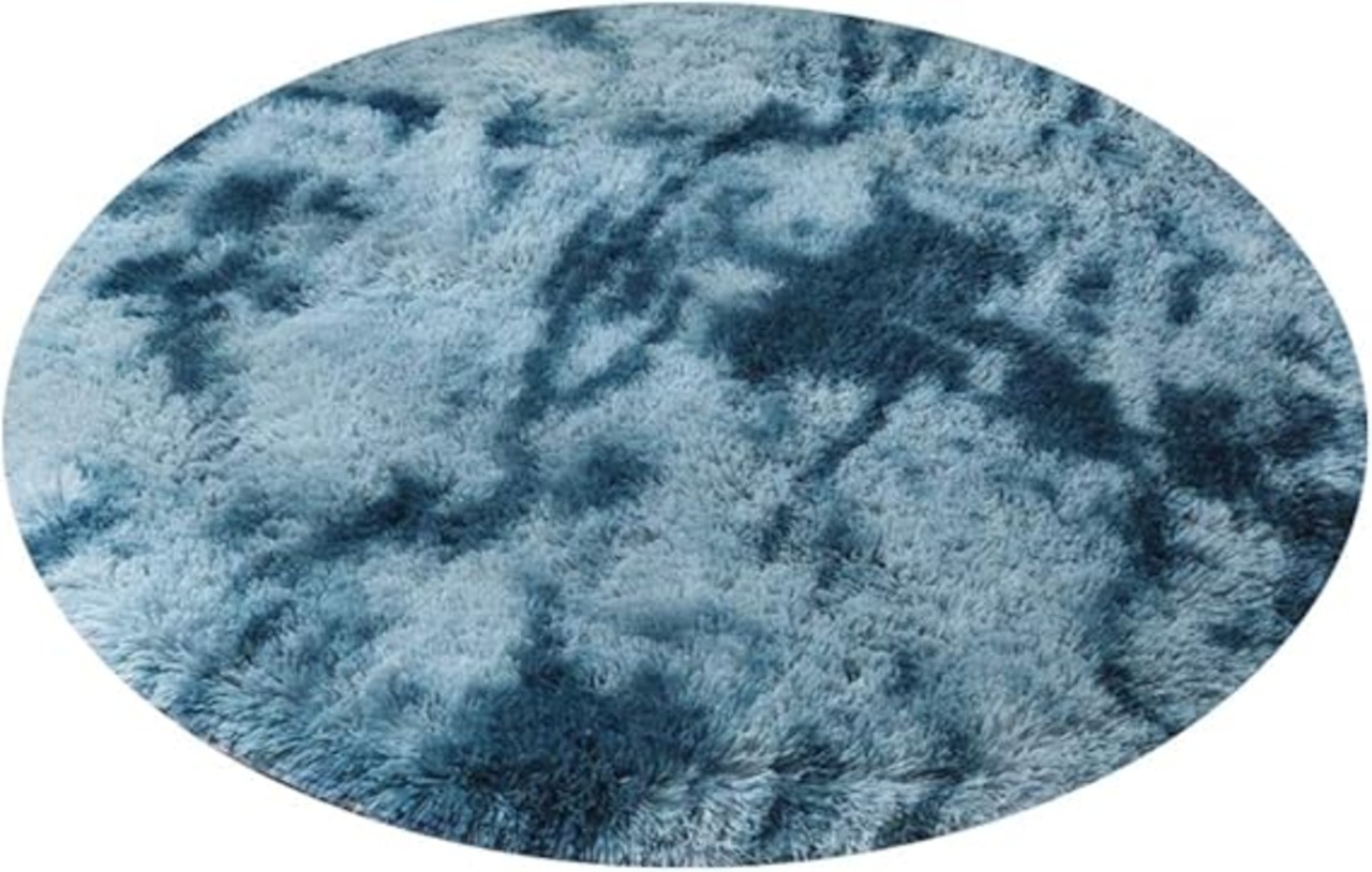 Kikon 洗える 円形 ラグマット カーペット オールシーズン シャギーラグ 絨毯 滑り止め付 丸型 冬用 夏用 床暖房対応 (ブルー2, 140cm)