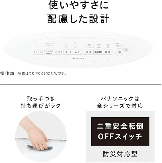 パナソニック セラミックファンヒーター 加湿機能付 ひとセンサー付 ナノイー搭載 ホワイト DS-FKX1206-W