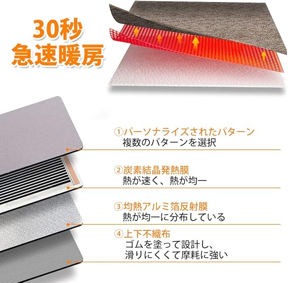 省エネでお得:韓国から輸入してきたカーボンクリスタルヒートフィルムを採用し、ヒートアップが素早く、汚染なく異臭などが一切なく、ぽかぱかで快適です。省エネで電気代が1時間4.8円しかかからないのでローコストで経済的で気軽に使えます