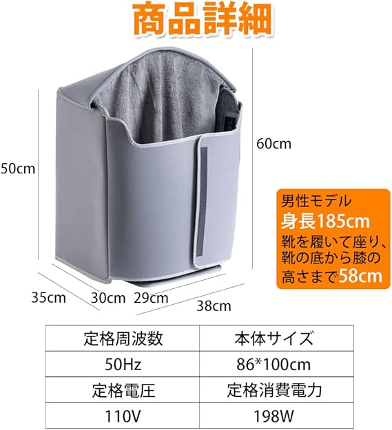 本体サイズ:86*100cm 外箱サイズ:50*45*5.35cm ネットウェート:2.2kg グロスウェート:2.4kg カラー:グレー セット内容:本体*1、電源アダプター*1、日本語取扱説明書*1、ボックス*1