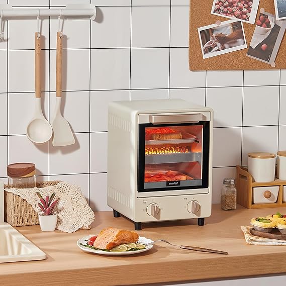 【高性能で多機能】この縦型二層構造のオーブントースターは、複数の異なる料理を同時に加熱できるため、調理プロセスがより効率的で迅速になります。もう一品の料理が完成するのを待つ必要はありません。家族の集まりや友人のパーティーなど、短時間で多くの料理を作りたい人に特に適しています。