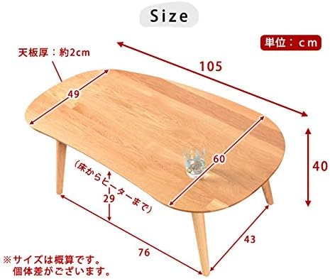 家具の赤や こたつ クロエ 幅105cm 家具調こたつ 天然木 天板 オーク 突板ビーンズ かわいい (ブラウン)