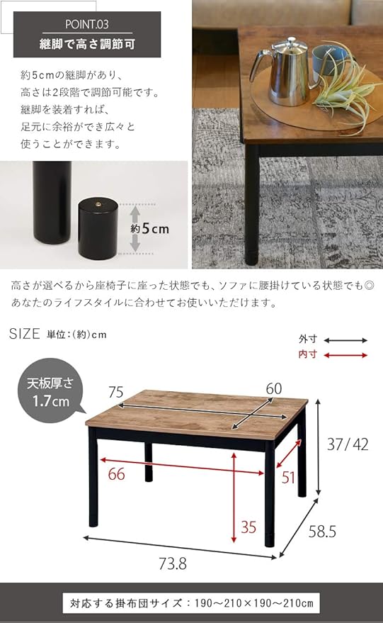 【本体サイズ】:(約)幅75×奥行60×高さ37(継脚時42)cm