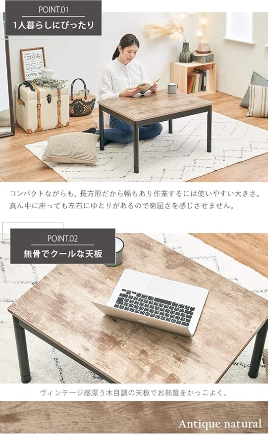 萩原(Hagihara) こたつ こたつテーブル センターテーブル カジュアル 一人用 【年中使えるデザイン性】 長方形 奥行60×幅75 ヴィンテージ調 ナチュラル アルテナ7560ANA